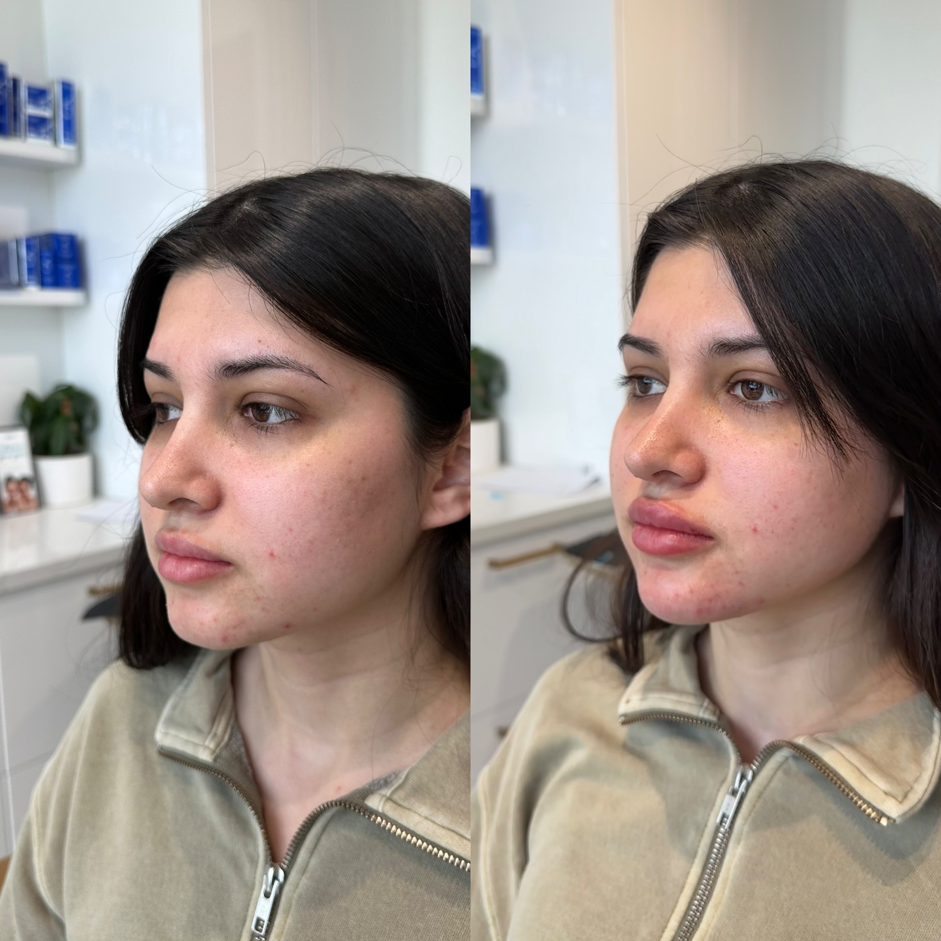 This patient received our profile enhancement package to enhance her chin and lips for a more balanced profile and refined face shape.